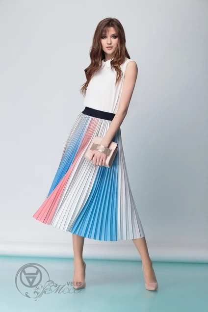 Юбка-гофре из текстильного полотна на резинке. Углы гофре из контрастного цвета. Длина юбки - 83 см.