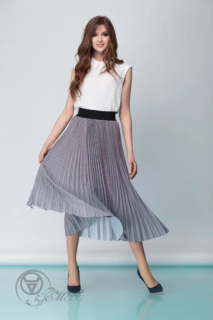 Юбка-гофре из текстильного полотна на резинке. Углы гофре из контрастного цвета. Длина юбки - 83 см.