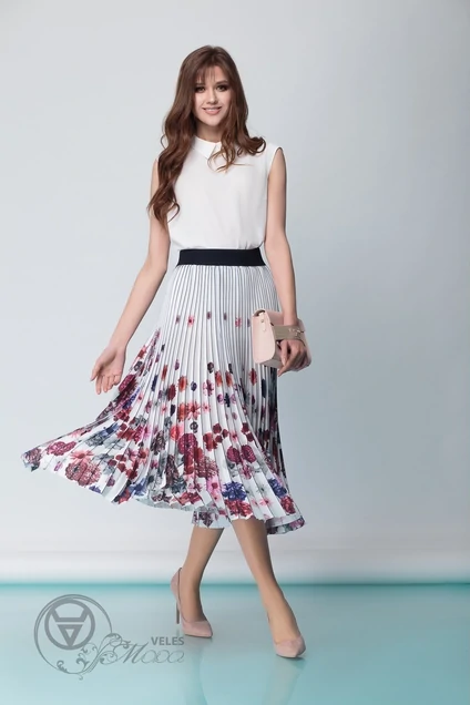 Юбка 1159 молочный+цветы Anna Majewska