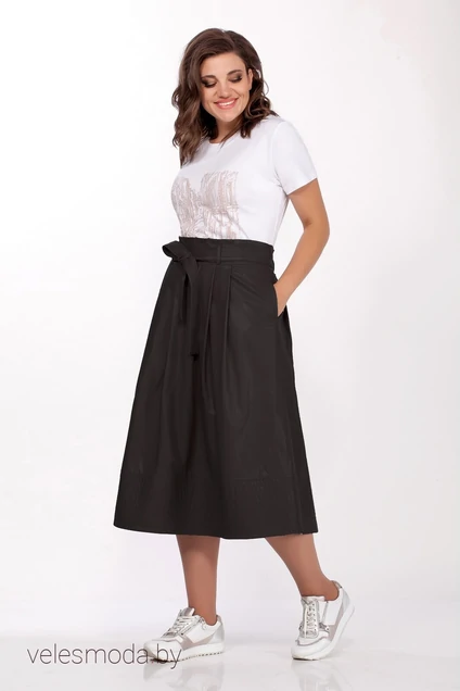 Юбка женская, из хлопковой ткани. Изделие с цельновыкроенным поясом . В области талии заложены складки, по передней и задней части. В боковых швах расположеныкарманы. Низ юбки отрезной, с горизонтальными отделочными сточками и контрастной подкладкой. Декоративный пояс прекрасно дополняет изделие, и позволяет более комфортнои выгодно отрегулировать линию талии. спинка юбки сосредним швом, в котором обработана потайная молния. Длина изделия - 80 см.