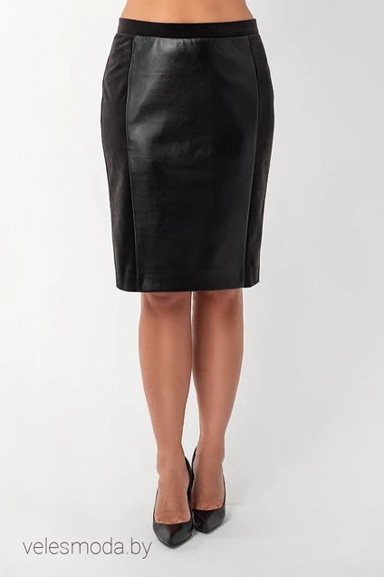 Классическая черная юбка со вставкой из эко-кожи спереди. Отлично подойдет как для повседневного образа, так и для офисного лука.