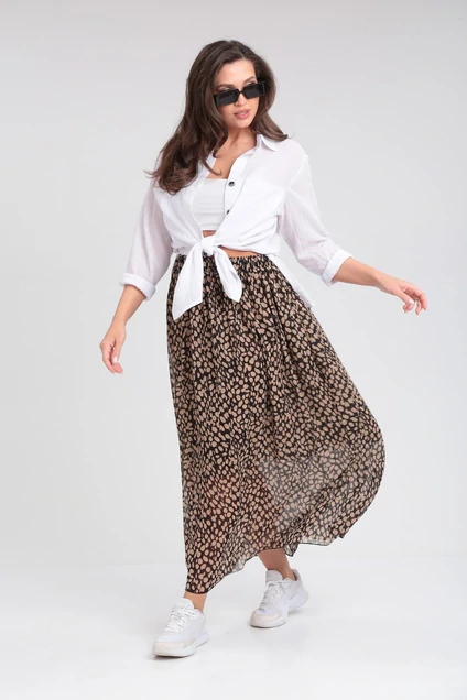 Женская летняя юбка в пол - это идеальный выбор, кто ценит комфорт и стиль в одном образе. Длинный макси-силуэт создает элегантный воздушный образ, благодаря тонкой двойной шифоновой юбке. А интересный черно-бежевый принт придает особую изюминку вашему гардеробу, позволяя благодаря такой расцветке, носить эту юбку, создавая модные луки не только летом, но и осенью, и весной, сочетая с объемными свитерами или кожаными куртками. Эта юбка с поясом на широкой резинке, длинная, в меру пышная. Нижняя юбка выполнена до колена. Необычный и стильный винтажный крой делает ее универсальной - она подойдет как для молодежного, спортивного, так и для классического образа. Подчеркните свою женственность и элегантность этой прекрасной милой шифоновой юбкой от бренда «АХХА».