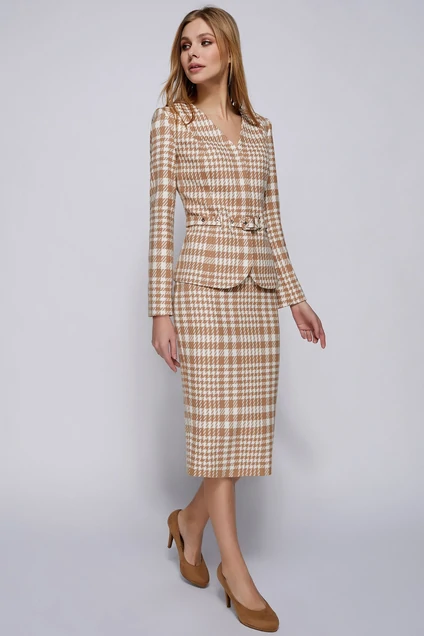 - юбка-миди с притачным поясом, выполнена из ткани с рисунком гусиная лапка