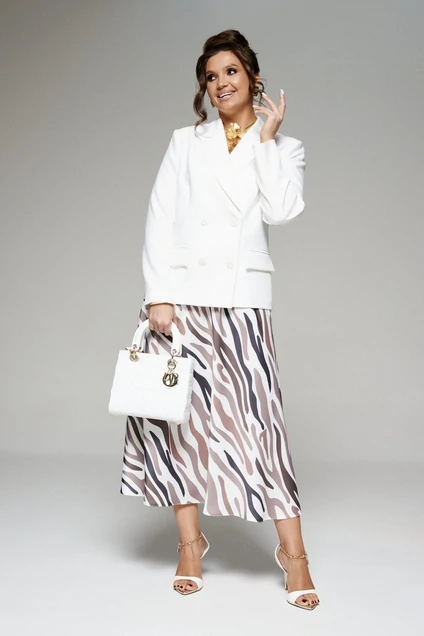 Идеально сочетается с жакетом из нашей коллекции нежного светлого оттенка.