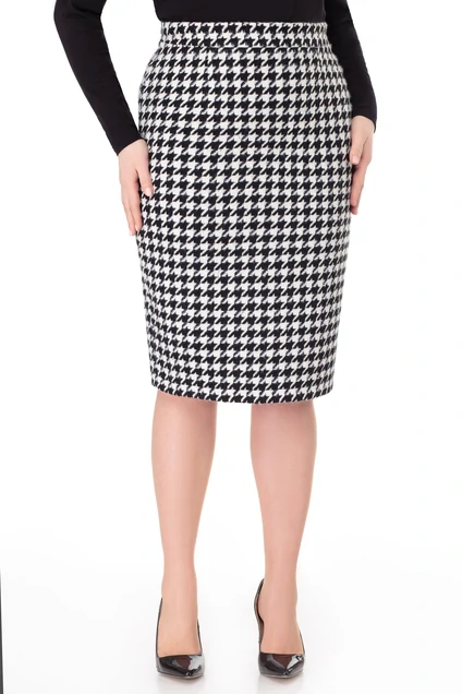Юбка женская прилегающего силуэта, длиной до середины колена, с притачной подкладкой. Юбка с талиевыми вытачками, на притачном поясе - кокетке, с застёжкой на металлическую тесьму молнию на заднем полотнище, со шлицей. По низу юбки, кокетке и молнии проложены отделочные строчки.
