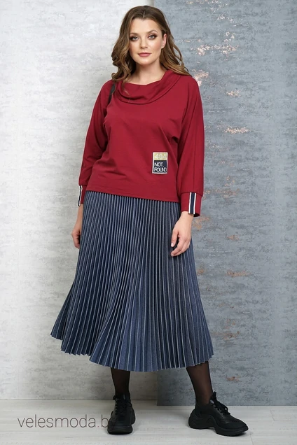Юбка – плиссе длиной миди расширенная к низу. Пояс притачной с эластичной тесьмой сзади. Застежка слева на потайную молнию и 1 прорезной петлей и пуговицей на поясе.