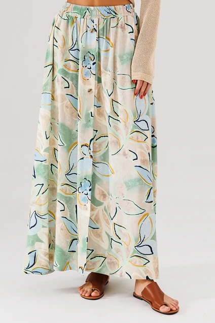 Юбка А-образного силуэта, на притачном отстроченном поясе на резинке. По переду с центральной застежкой на петли пуговицы. Юбка карманами в боковых швах, без подкладки..