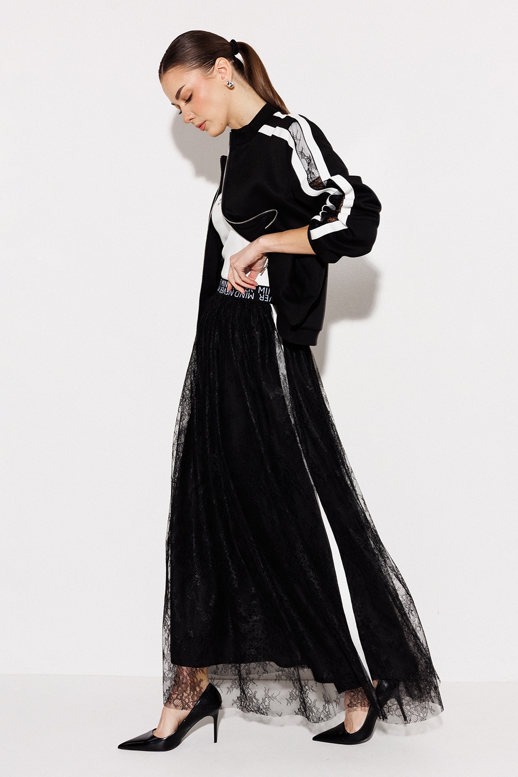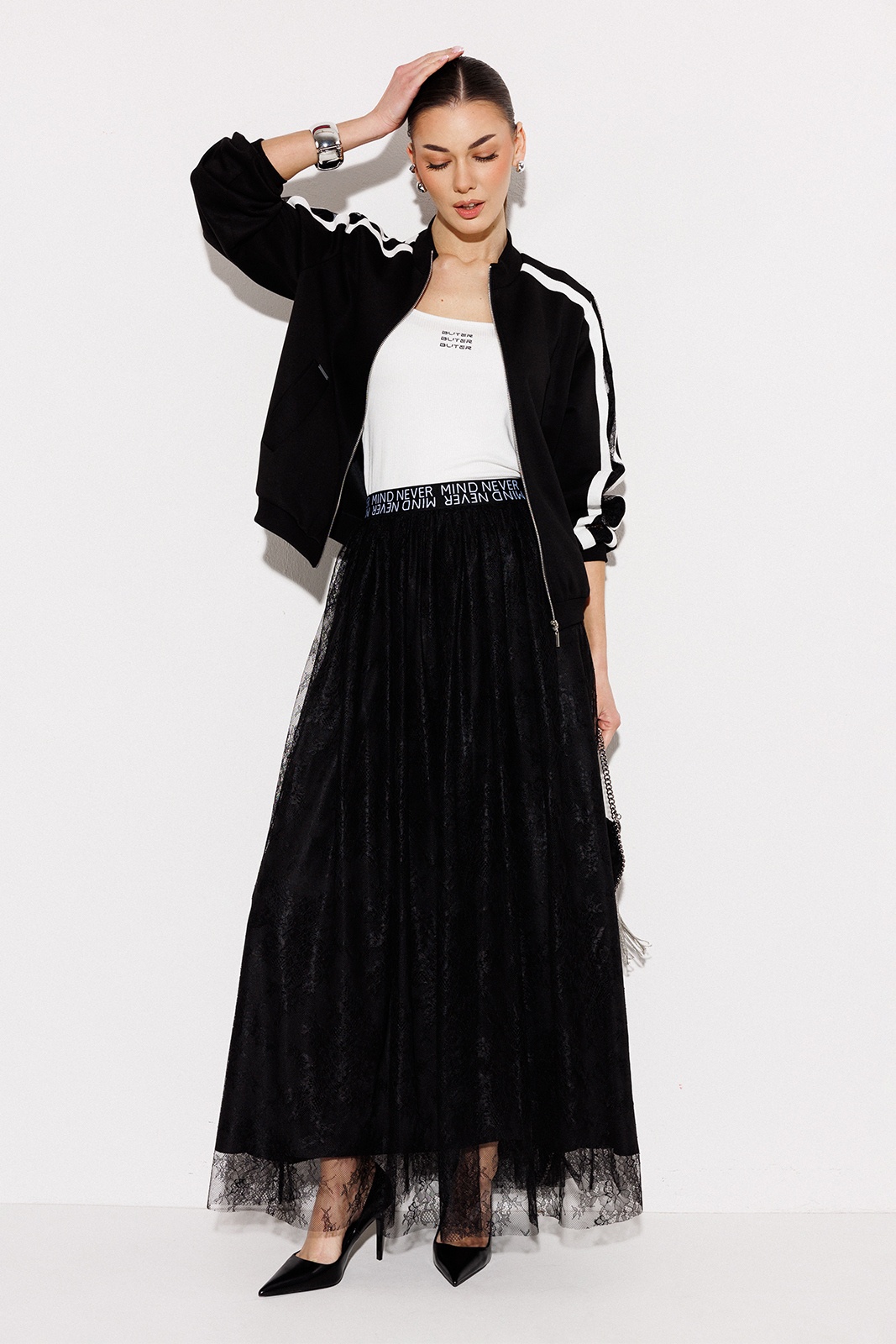 Юбка 3278 черный BUTER предлагает сочетание стиля и комфорта. Коллекция бренда BUTER представляет длинную юбку А-силуэта из кружева на подкладке, что придает изделию легкость и воздушность. Декоративная резинка на поясе с шрифтовой композицией добавляет элегантности и современности. Изготовленная из полиэстера, эта юбка идеально подходит для повседневного и нарядного стиля. Черный цвет делает юбку универсальной, что позволяет комбинировать ее с различными элементами гардероба. Благодаря боковым лампасам юбка приобретает индивидуальность и уникальность. Открывает возможности для весеннего и летнего гардероба.