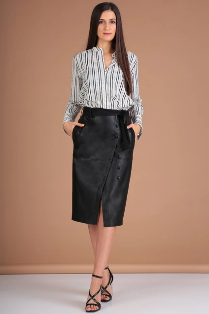 Модель для тех кто любит изюмику в своем гардеробе. Юбка с запахом является одной из самых оригинальных моделей юбок. Запах-элемент который предает юбке неповторимость и индивидуальность. Модель застегивается на петли-пуговицы. Длина по боковому шву 72 см.