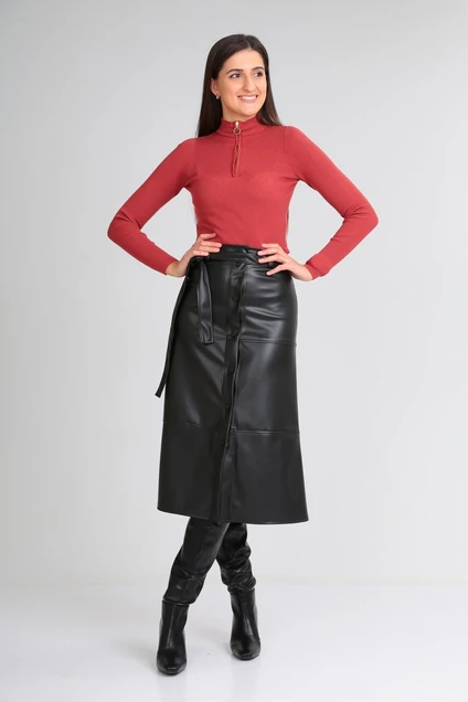 Юбка выполнена из экокожи высокого качества, изнанка в ткани - замш. Ткань тянется.