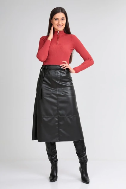 Юбка выполнена из экокожи высокого качества, изнанка в ткани - замш. Ткань тянется.
