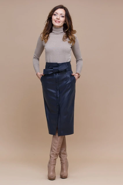 Элегантная женская юбка карандаш из мягкой экокожи на подкладке - must have гардероба каждой модницы. Завышенная талия и длина миди зрительно вытягивает силуэт, а широкий завязывающийся пояс подчеркивает талию. Юбка застегивается на пуговицы, обтянутые этой же кожей, по бокам карманы с отрезным бочком. Данная модель будет актуальна на каждый день и для особых случаев, подчеркнув Вашу индивидуальность и красоту. Параметры модели: Ог-84, От-66, Об-90, рост 166 см, на модели размер 42-164.