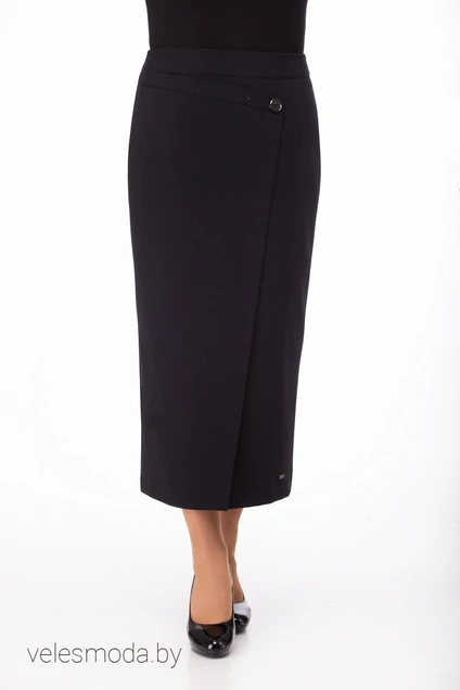 Юбка женская из костюмно-плательной ткани, на подкладе. Обтачной пояс. Переднее полотнище выполнено в виде имитации запаха, с разрезом. Заднее полотнище со средним швом и потайной молнией, 2 вытачки