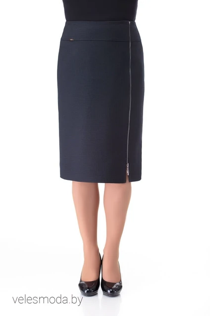 Юбка женская из плотной ткани в мелкую клетку, на подкладке. Притачной пояс. На переднем полотнище имитация застежки на молнию. На заднем полотнище 2 вытачки, потайная тесьма-молния в среднем шве, шлица.