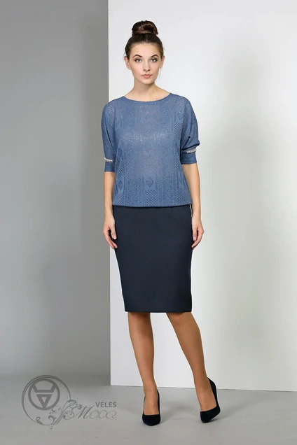 Юбка выполнена из костюмный ткани в мелкую точку. Юбка-карандаш заужена книзу, по переду декоративные листочки, застежка на потайную молнию в среднем шве юбки. Длина юбки: р.44-48 - 56см, р.50-54 - 63см.