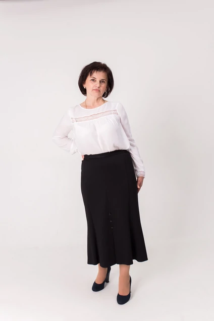 Юбка женская М-02 типа "Годе", длина 70 см. На переднем полотнище юбки расположены 3 пуговицы.