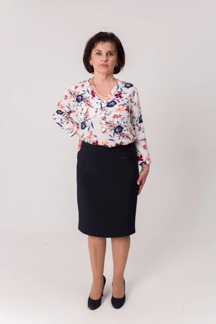 Юбка женская М-06, на кокетке, зауженная к низу ("карандаш"), на подкладке, длина 60 см. На заднем полотнище юбки расположена шлица.
