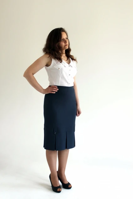Юбка женская М-08, прямая, в складку,, на подкладке длина 65 см. На заднем полотнище юбки расположена шлица.