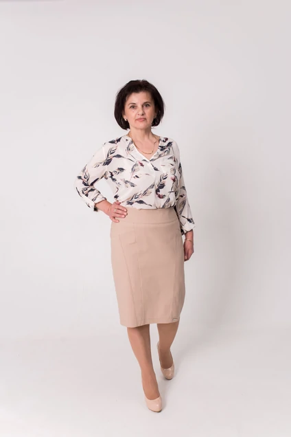 Юбка женская M-09, зауженная к низу ("карандаш"), на кокетке, длина 60 см. Декоративная отстрочка по переду. На заднем полотнище юбки расположена шлица.