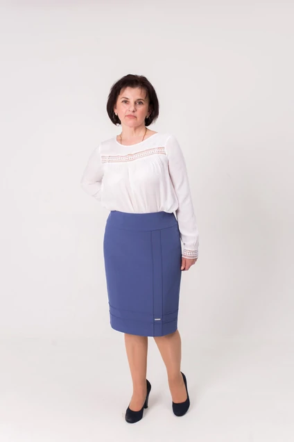 Юбка женская М-21, зауженная к низу ("карандаш"), на кокетке, длина 60 см. На заднем полотнище юбки расположена шлица.