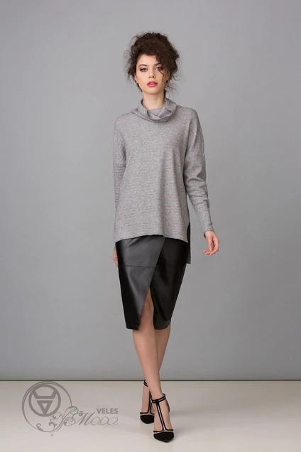 Юбка из кожи искусственной, на подкладке. По переду запах, идущий от талевых вытачек. Верх юбки обработан обтачкой. Особый нюанс в изделии – подрезы горизонтальные по переду и спинке. Застежка-молния в среднем шве спинки. Длина изделия по спинке/ Длина изделия по переду/ Длина рукава, см 42-44 р-р 46-50 р-р 52-56 р-р 58-62 р-р 67/-/- 67/-/- 67/-/- 67/-/-