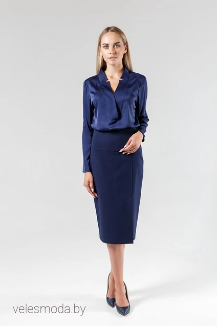 Юбка из стрэйчевой костюмной ткани на подкладке по крою «карандаш». Юбка на широкой кокетке, со шлицей по переду и застежкой молнией в среднем шве заднего полотнища.