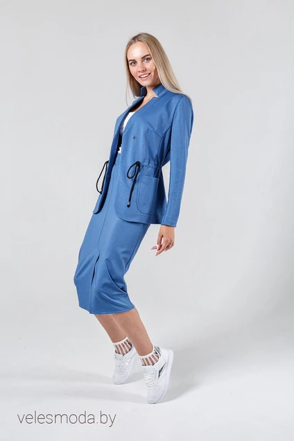 Юбка из стрэйчевой ткани «Джерси», зауженная к низу. По переду шлица, прорезные карманы в боковых швах, средний шов по спинке и широкий пояс.