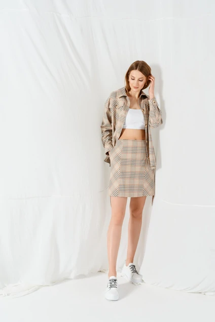 Юбка женская расширенная к низу. По переду рельефы, карманы в боковых швах. Застежка на потайную тесьму-молнию в среднем шве заднего полотнища. Романтичный стиль позволяет комбинировать юбку с другими элементами гардероба. Длина изделия – 47см