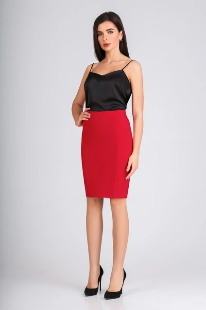 Классическая юбка-карандаш длиной до колена. Спереди и сзади по бокам вертикальные рельефы визуально вытягивают силуэт. Средняя посадка на талии. Сзади шлица, застежка в среднем шве на потайную молнию. На подкладке.