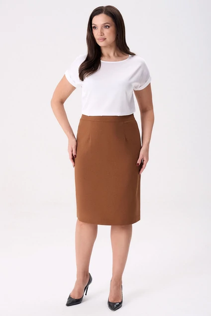Классическая юбка-карандаш. Выполнена из костюмного полотна. Прямой силуэт. Высокая посадка на талии. Притачной пояс. Застежка в среднем шве спинки на потайную молнию и пуговицу на поясе. По спинке пояс частично с эластичной резинкой для комфортной посадки. Средний шов спинки заканчивается шлицей. Юбка на подкладке.