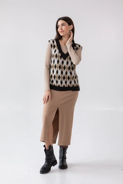 Юбка 4018 песочный + белый Ivera collection