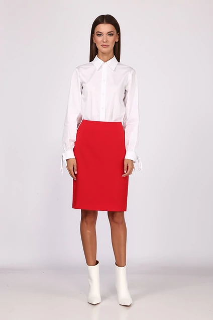 Стильная  юбка - карандаш с пришивным  поясом, застежкой на потайную молнию в среднем шве заднего полотнища. Переднее полотнище с двумя талевыми выточками. Заднее полотнище со средним швом, талевыми вытачками.