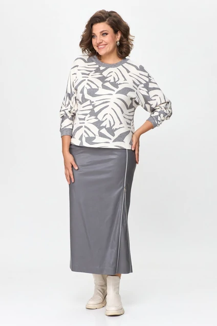 Юбка прямая слегка расклешеная к низу. Пояс притачной с застежкой на молнию и пуговицу. по переду декоративная молния. Длина юбки 87 см