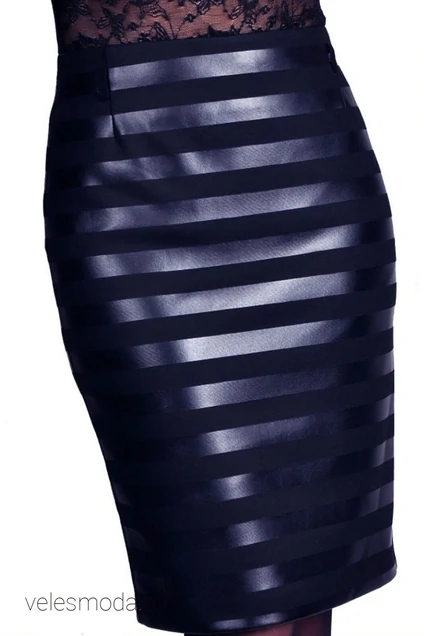 Юбка из трикотажного полотна с нанесением полоски "экокожа", ширина полосок на ткани 2 см. Юбка на подкладке, по спинке потойная молния и шлица.