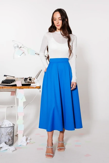 Лаконичная юбка-солнце длинной миди — дополните ее укороченным топом или заправленной рубашкой, чтобы подчеркнуть талию. Мы выбрали для модели гладкую поливискозу, чтобы она красиво струилась. В боковых швах расположены карманы. Длина с поясом - 82 см.