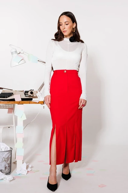 Женственная модель на поясе и с высокими разрезами, открывающими ноги в движении. Тонкая, гладкая костюмная поливискоза подходит для повседневных образов — эта ткань выглядит презентабельно и благодаря добавлению искусственных волокон долго не утратит своих качеств. Комбинируйте с жакетом из нашей коллекции. Длина с поясом - 92 см.