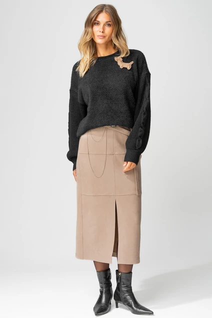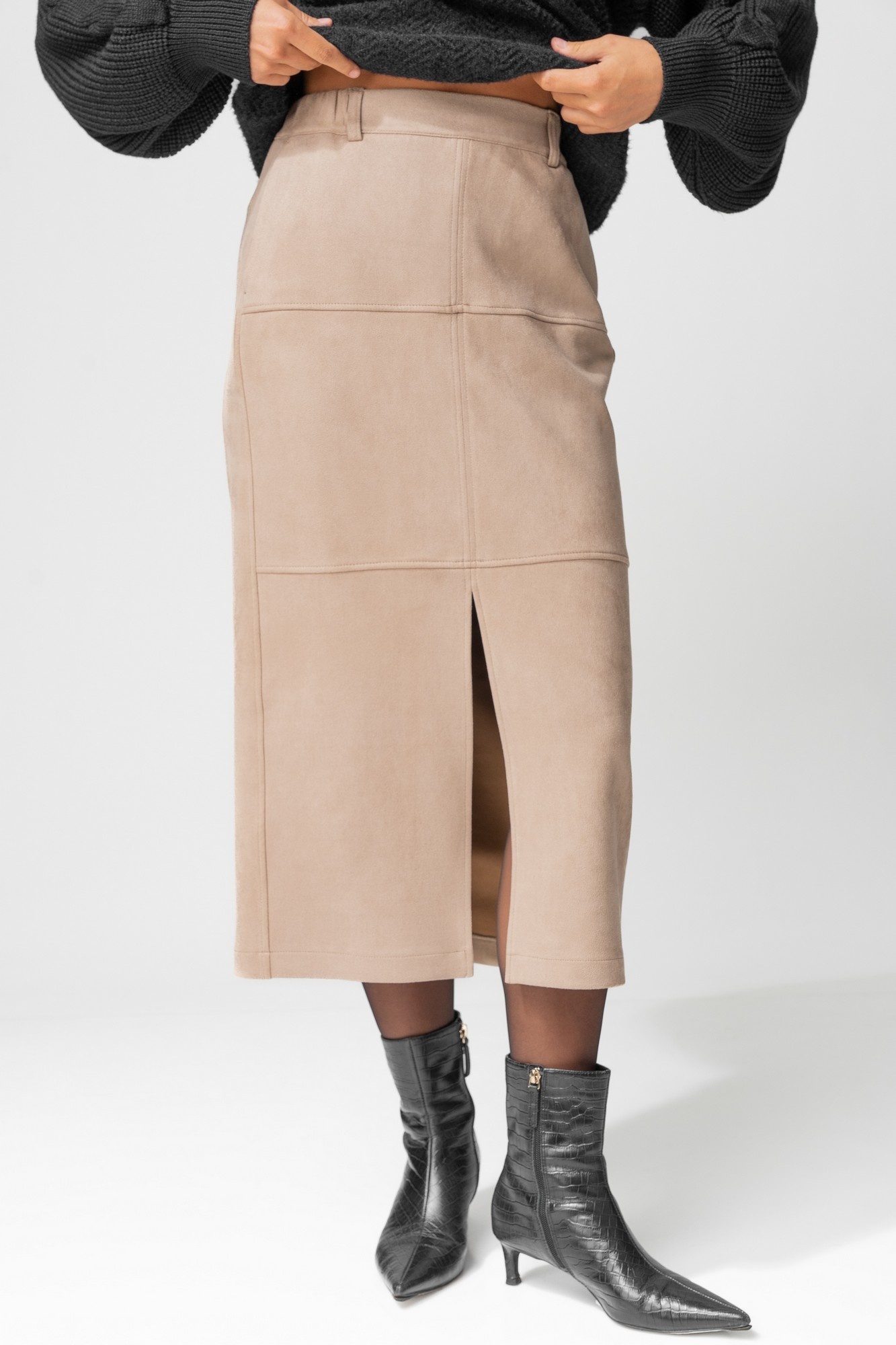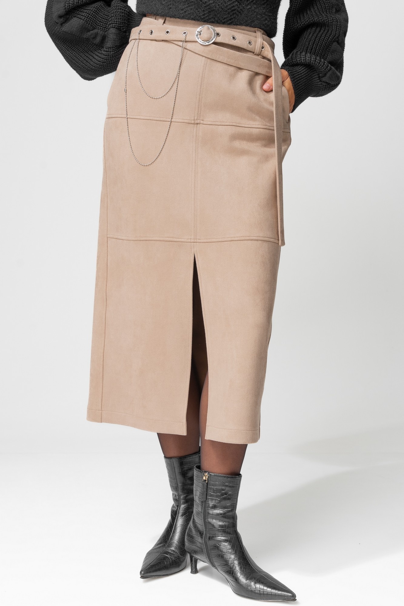 Юбка от LAIKONY из экозамши длиной до середины икр.
