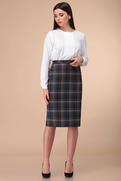 Повседневная текстильная юбка на подкладке зауженная к низу. Юбка на поясе, по бокам от вытачки до вытачки с эластичной лентой. Сзади средний шов со шлицей и застежкой на пуговицу и молнию. Юбка дополнена съёмным поясом с обтянутой пряжкой из основной ткани.Ткань подкладочная -- 100% полиэстер