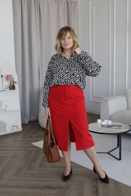 Элегантная юбка-карандаш с разрезом спереди. У юбки приталенный крой с вытачками и посадкой по фигуре. Внутри юбки дышащая подкладка, которая придает дополнительную прочность и делает носку более приятной. Юбка-карандаш с разрезом – это классический, в меру строгий элемент одежды, подходящий для разных случаев. Ее можно сочетать с блузами, топами и водолазками, создавая деловые образы для работы и учебы. В сочетании с яркими и насыщенными блузами получается нарядный или вечерний образ для торжественных мероприятий. В качестве верхней одежды к юбке подойдут жакеты и пальто. Подкладка 100% полиэстер