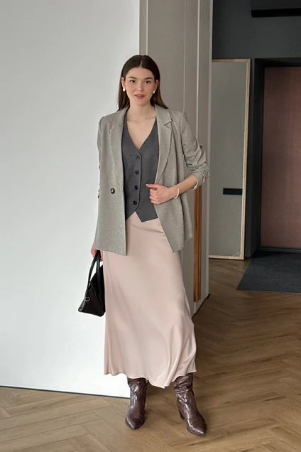 Струящаяся юбка миди из гладкой атласной вискозы. У юбки свободный крой, ткань приятная на ощупь, с деликатным сиянием. Юбка дополнит элегантные образы с топами, блузами, жакетами, в качестве аксессуара можно добавить ремень на талию. Подойдет для вечерних выходов и торжественных мероприятий.