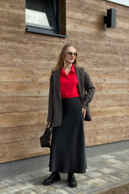 Струящаяся юбка миди из гладкой атласной вискозы. У юбки свободный крой, ткань приятная на ощупь, с деликатным сиянием. Юбка дополнит элегантные образы с топами, блузами, жакетами, в качестве аксессуара можно добавить ремень на талию. Подойдет для вечерних выходов и торжественных мероприятий.