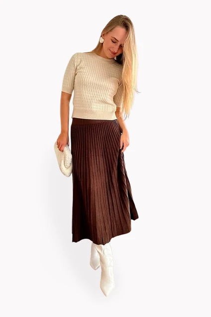 Юбка плиссе по талии на резинке — это изысканный и стильный элемент гардероба, который сочетает в себе комфорт и элегантность. Благодаря мягкому материалу и удобной резинке, юбка легко сидит по фигуре, позволяя свободно двигаться и чувствовать себя уверенно в любом образе. Плиссировка добавляет воздушности и динамики, делая изделия визуально легкими и игривыми. Идеальный выбор как для повседневного образа, так и для особых случаев. Юбка прекрасно сочетается с топами, блузками и свитерами, а также с обувью на каблуке или кедах, позволяя создавать разнообразные стили — от романтического до кэжуал.