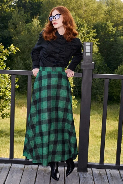 Юбка годе из костюмной ткани на подкладке. По линии талии притачной пояс и застёжка по боковому шву на потайную молнию. В боковых швах прорезные карманы.