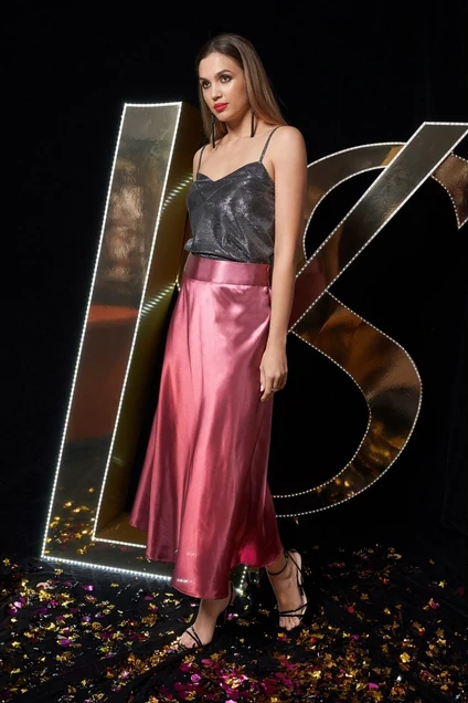 Юбка-макси, силуэт -колокол, с обтачкой и с застежкой молния в левом боковом шве. Длина изделия: 100 см