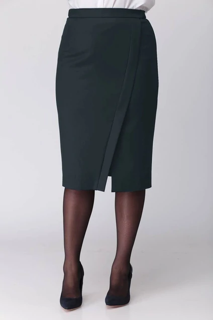Переднее полотнище с декоративной косой планкой и разрезом из-под планки по низу. Заднее полотнище со средним швом и потайной тесьмой-молнией в нем.