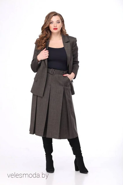 Юбка идеально подойдет для офиса и предприятий, практикующих деловой стиль в одежде. На фото модель с жакетом 122.
