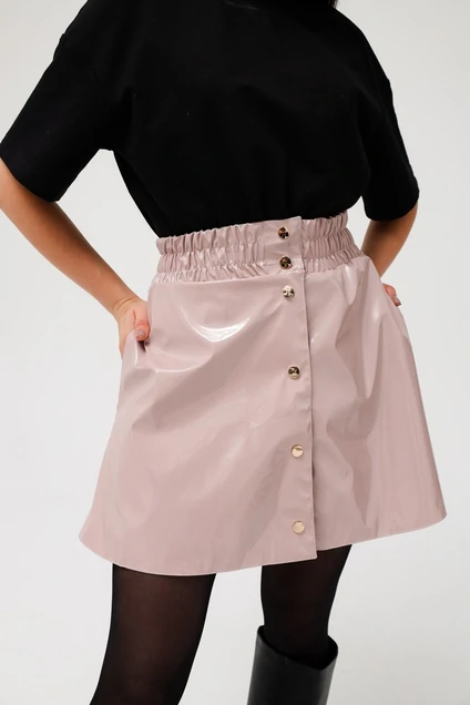 Элегантная мини-юбка лаковая в цвете розовая пудра - идеальный выбор для стильных девушек! Удобная резинка на талии подчеркнет изящную линию талии, а застежка на кнопках придает изделию особый шарм. Крой юбки трапециевидной формы создает эффектный силуэт и делает эту модель универсальной для любого повода. Не упустите возможность добавить немного роскоши и элегантности в свой гардероб! Дополните образ кардиганом или футболкой Бренда MASHA SKORINA, чтобы быть еще более неотразимой. Размеры 40-42, 44-46.