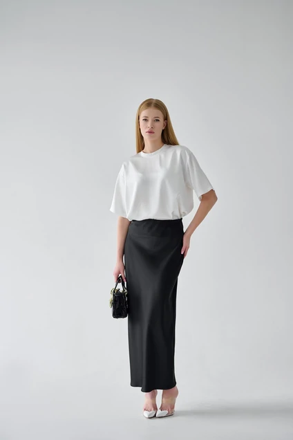 Юбка макси из шелковистой ткани - незаменимый предмет гардероба. Это один из универсальных вариантов, который подходит как для торжественного мероприятия, так и для повседневной жизни. Актуальный крой "по косой" позволяет юбке струиться и обеспечивает идеальную посадку по фигуре и невероятно стройнит. Для удобства в использовании по талии предусмотрена резинка шириной 3 см. Она потайная, пришита с изнаночной стороны, что позволяет, не испортив внешний вид, обеспечить отличную фиксацию по талии. Особого шика добавляет благоробный приглушенный блеск ткани атласного переплетения.