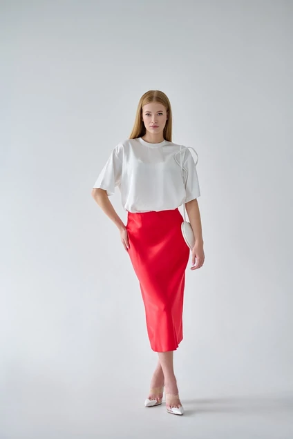 Юбка миди из шелковистой ткани - незаменимый предмет гардероба. Это один из универсальных вариантов, который подходит как для торжественного мероприятия, так и для повседневной жизни. Актуальный крой "по косой" позволяет юбке струиться, обеспечивает идеальную посадку по фигуре и невероятно стройнит. Для удобства в использовании по талии предусмотрена резинка шириной 3 см. Она потайная, пришита с изнаночной стороны, что позволяет, не испортив внешний вид, обеспечить отличную фиксацию по талии. Особого шика добавляет благородный приглушенный блеск ткани атласного переплетения.