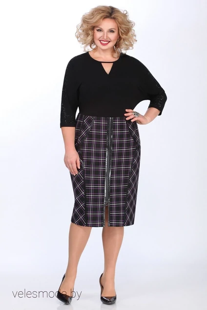 Юбка женская полуприлегающего силуэта, на подкладке. Верхний срез юбки на обтачке. Застежка по центру переднего полотнища на разьемной декоративной молнии. По отрезным бочкам, рельефам и у края молнии настрочена тесьма "лаке". Спинка с вытачками талиевыми, средним швом и разрезом. Длина юбки 48-52 62см, 54-58 64см. Реальные замеры 48 от-86см, об-104см, 50 от-90см, об-108см, 52 от-94см, об-112см, 54 от-99см, об-118см, 56 от-103см, об-122см, 58 от-107см, об-126см.